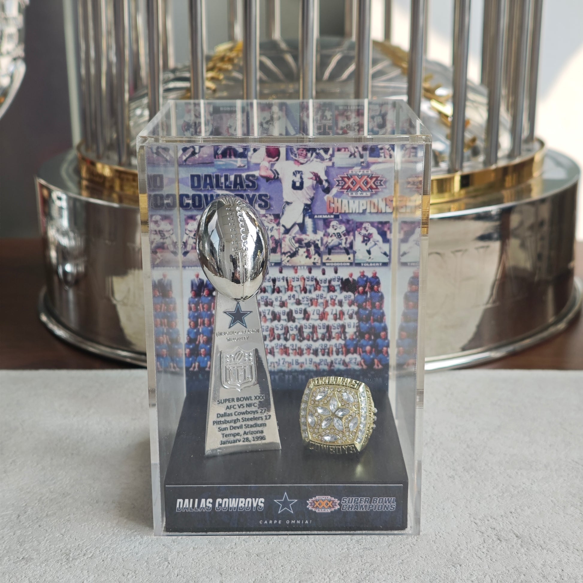 1996 Dallas Cowboys Super Bowl XXX Championship Trophy Display Case
