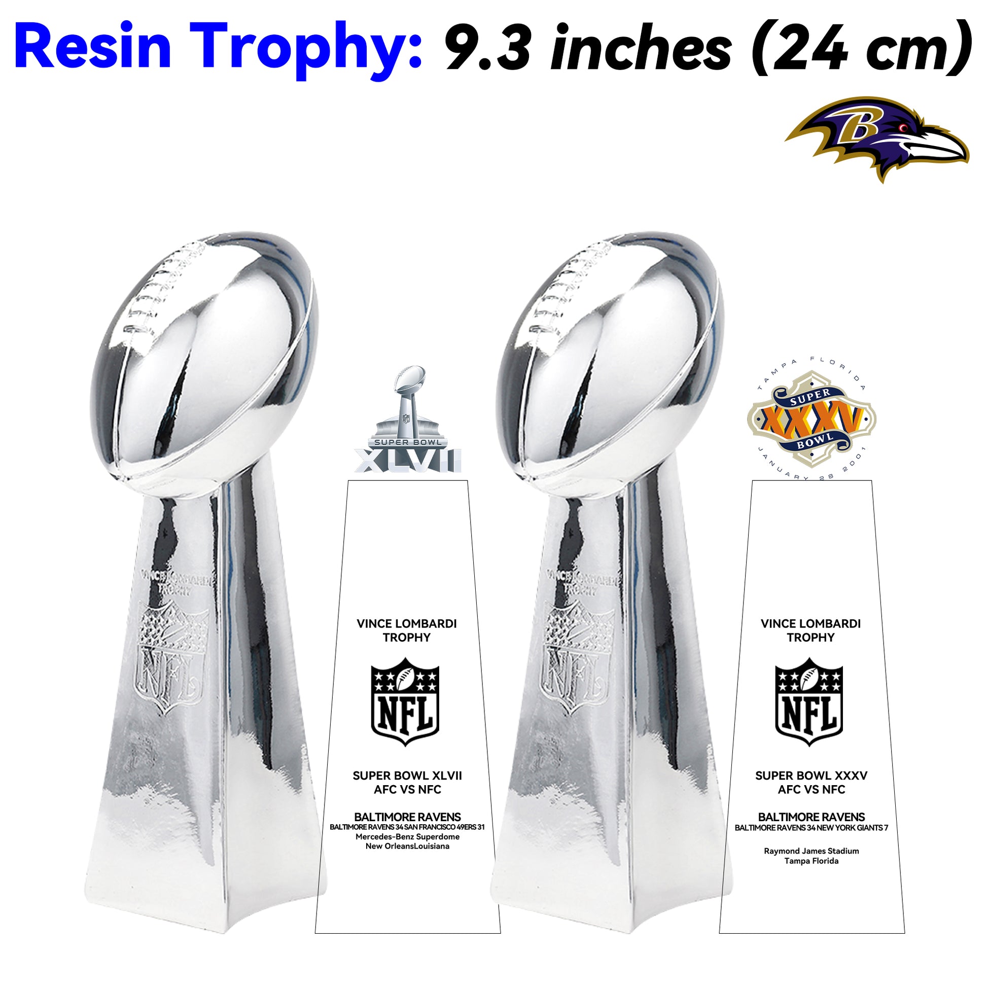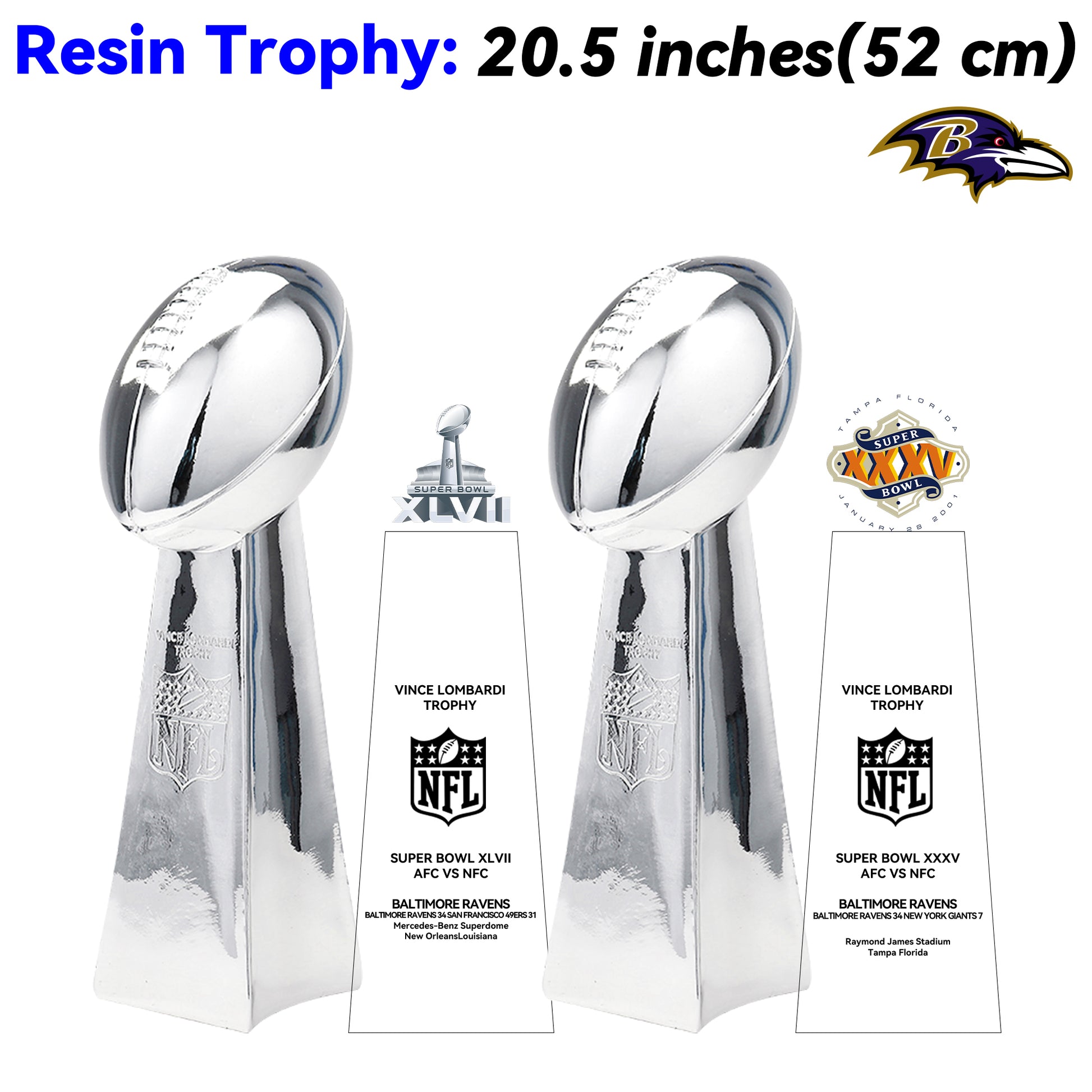 Baltimore Ravens 2 Super Bowl trophies